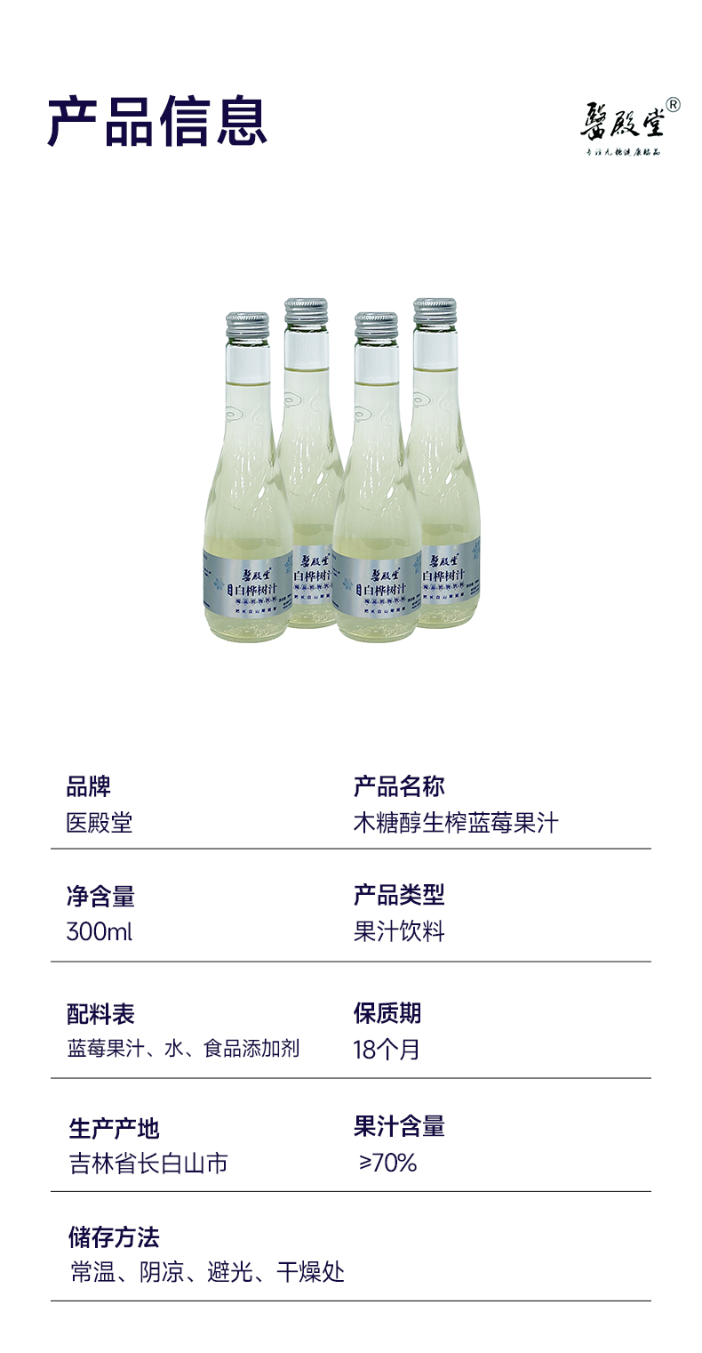 医殿堂蓝莓果汁木糖醇饮料300ml*4瓶 特惠装零脂低卡