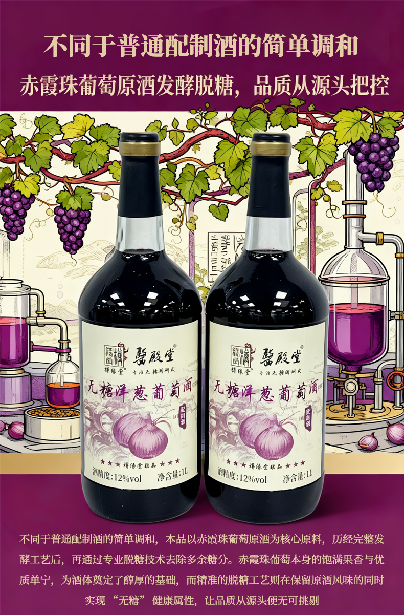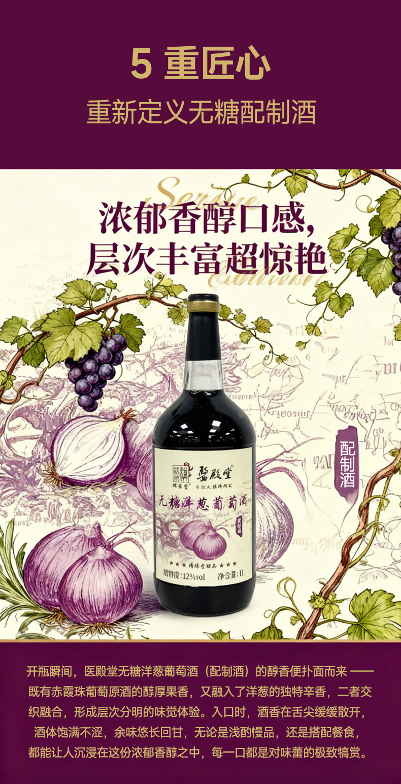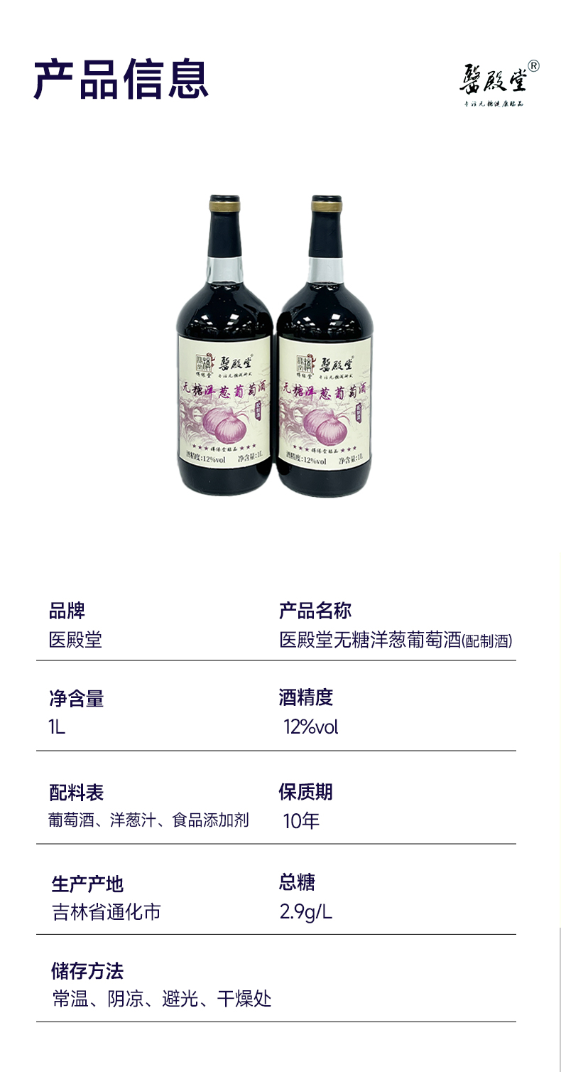 医殿堂无糖洋葱葡萄酒中老年三高人群喝的酒750ml/瓶